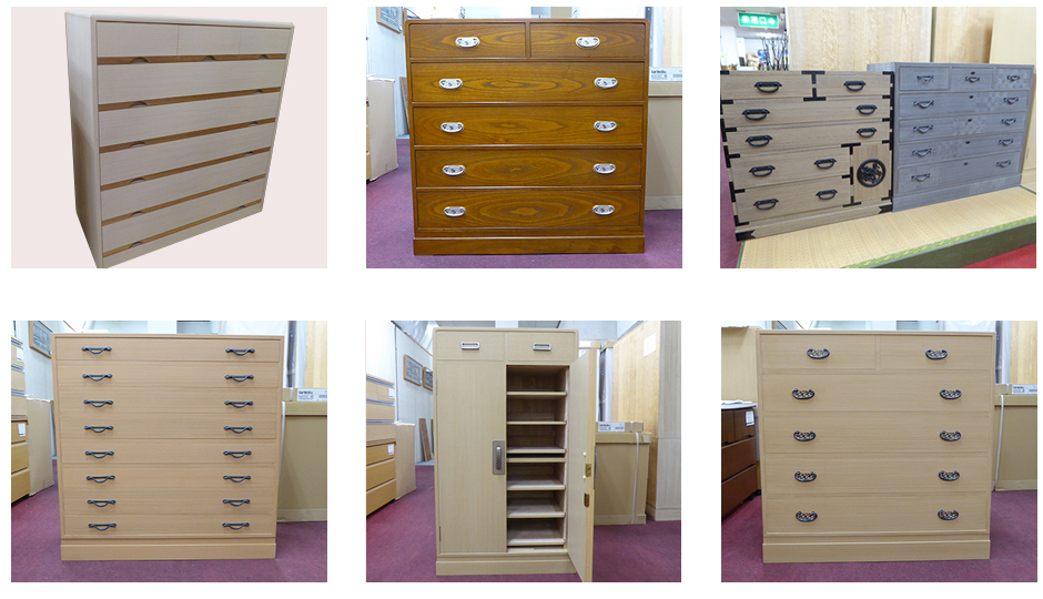 いろいろな種類の桐たんすと洋家具をたくさん常時展示販売しておりますので、ぜひお越しください。