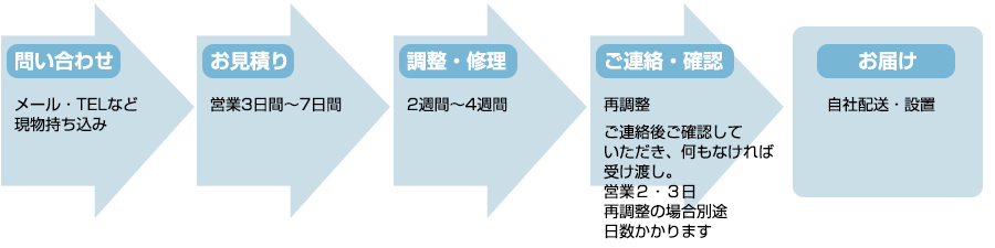 ※おおよその流れです。修理・調整の具合により変わることもあります。