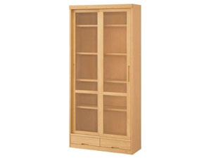 本棚 スリムな奥行きとシンプルなデザイン、どんな空間にも馴染みやすいシンプルなデザインで、お部屋にあったサイズや仕様が選べます。奥行きを抑えた設計ながらA4サイズが縦で収納でき、小物などの収納に使いやすい引出を2杯備えています。また、埃の侵入を防ぐスライド扉付きの書棚です。