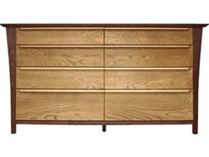 ロングセラー商品。タモ材柾目を生かし、優しい曲面と長い引手が流れる様なデザインです。